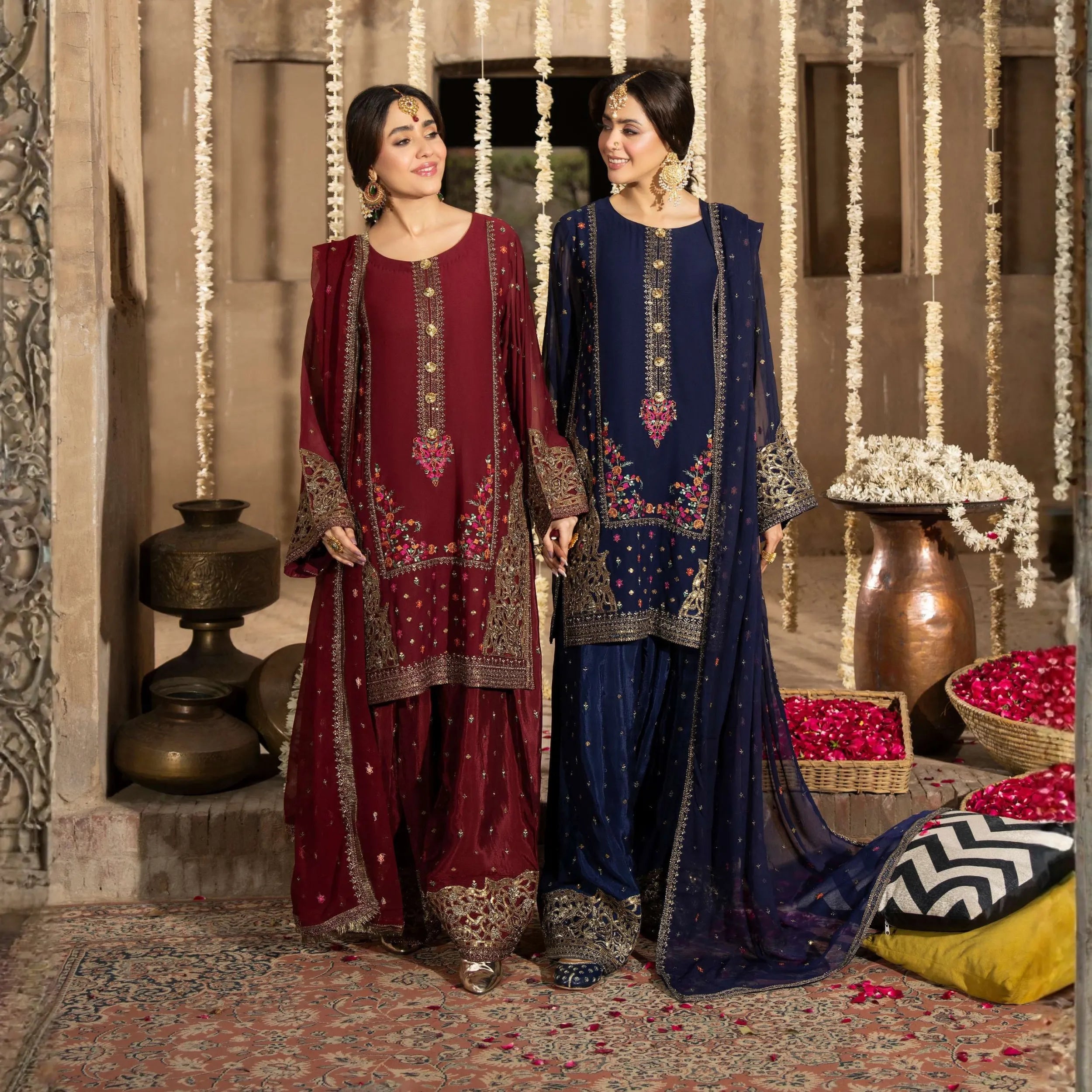 UMS-53 Solid Embroidered Dhanak Co-Ords Set | Ready to Wear | Simrans