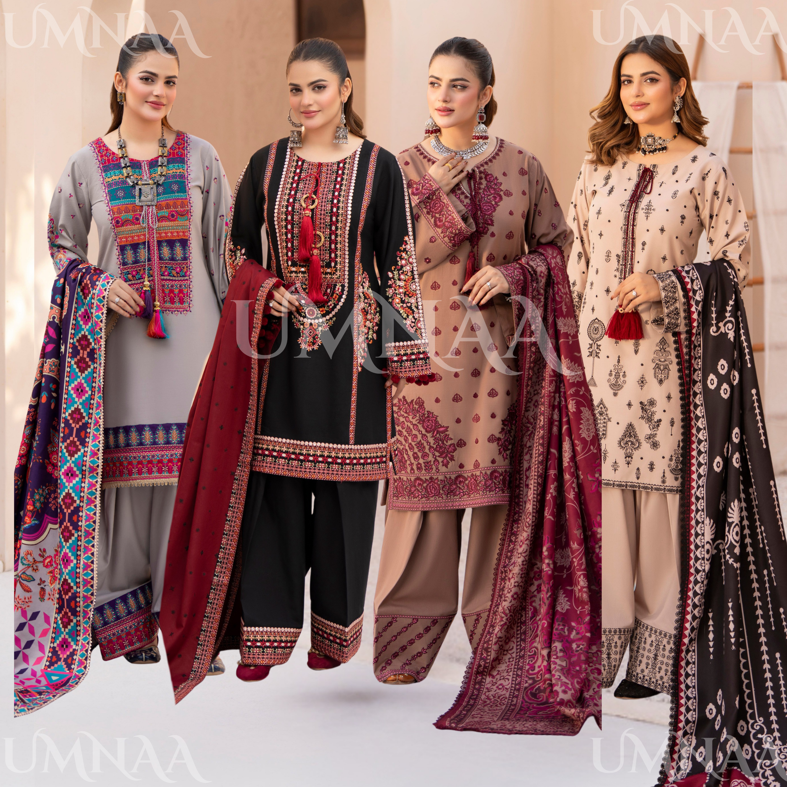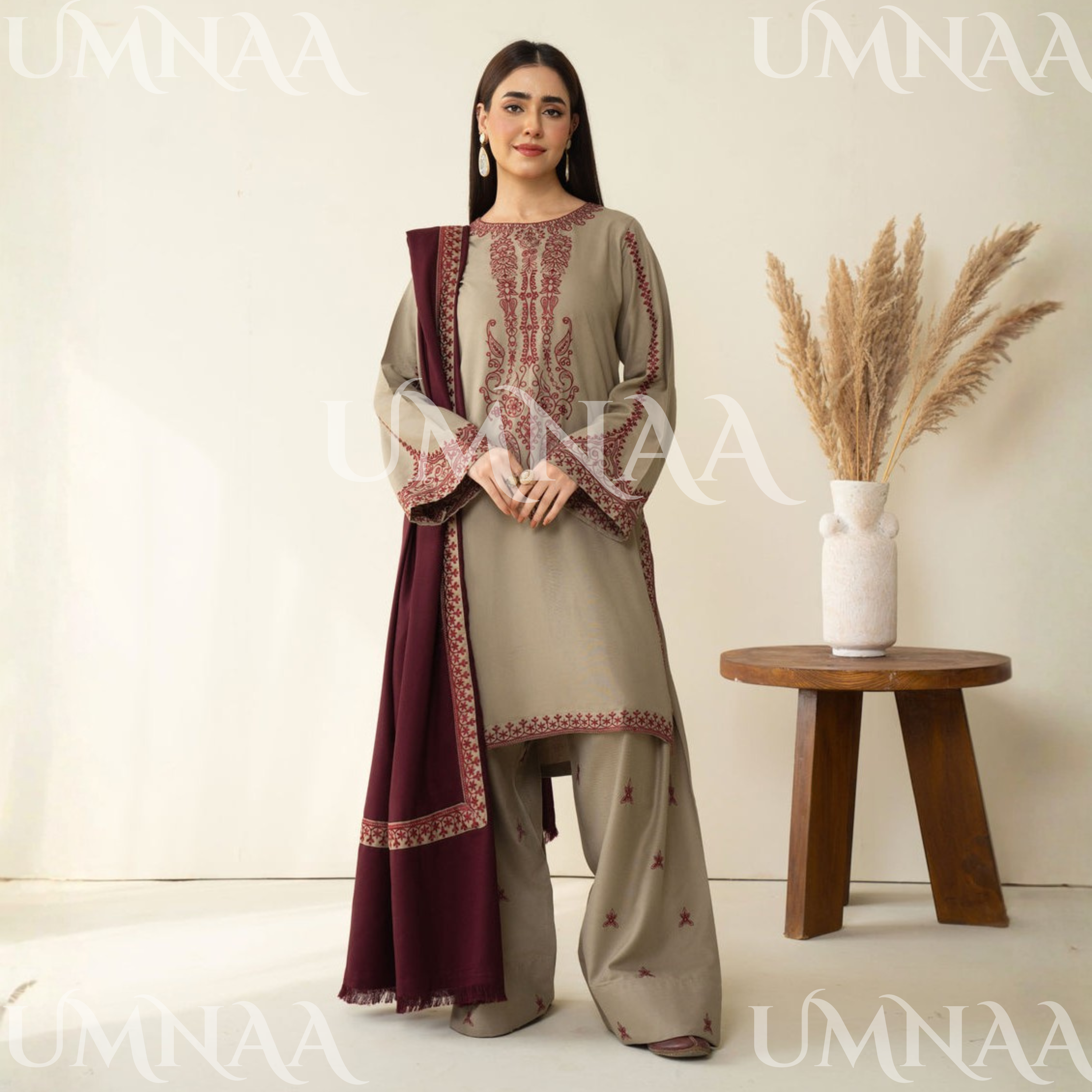 UA-135 Embroidered khaddar 3 Pc dress | Ready to Wear Asian Clothes | Umnaa