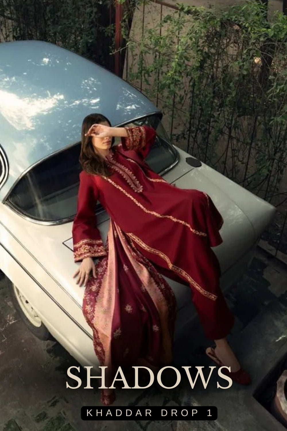 UCA-33 "Shadows" Embroidered Khaddar with Wool Shawl Winter Collection by Casuallite