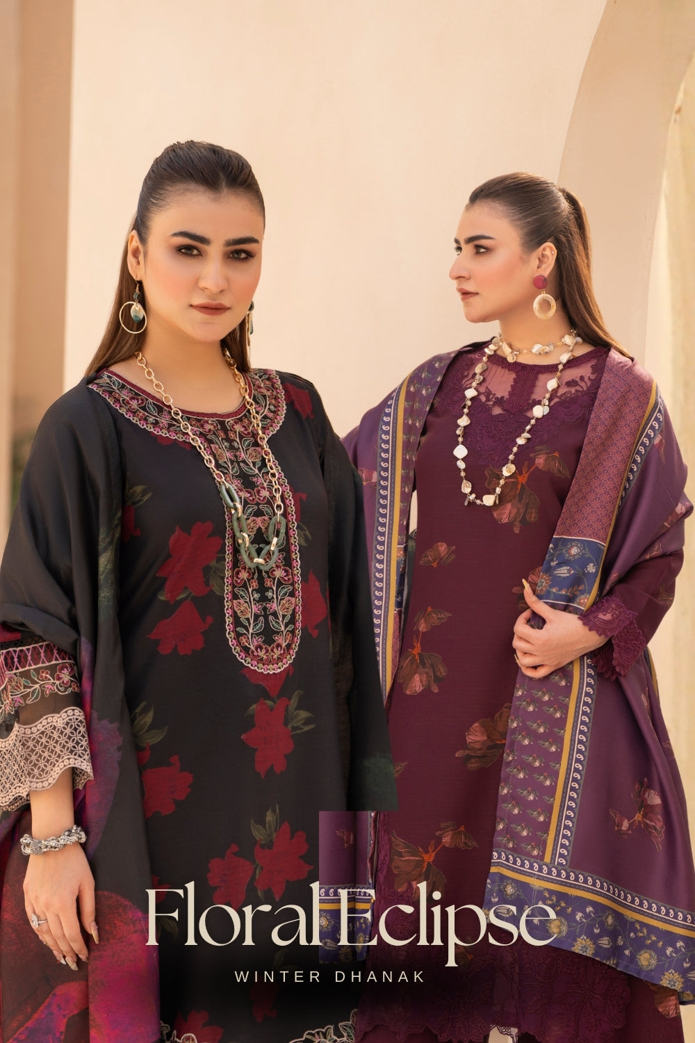 UA-148 Modest Wear Embroidered Dhanak Co-Ords Set by Umnaa