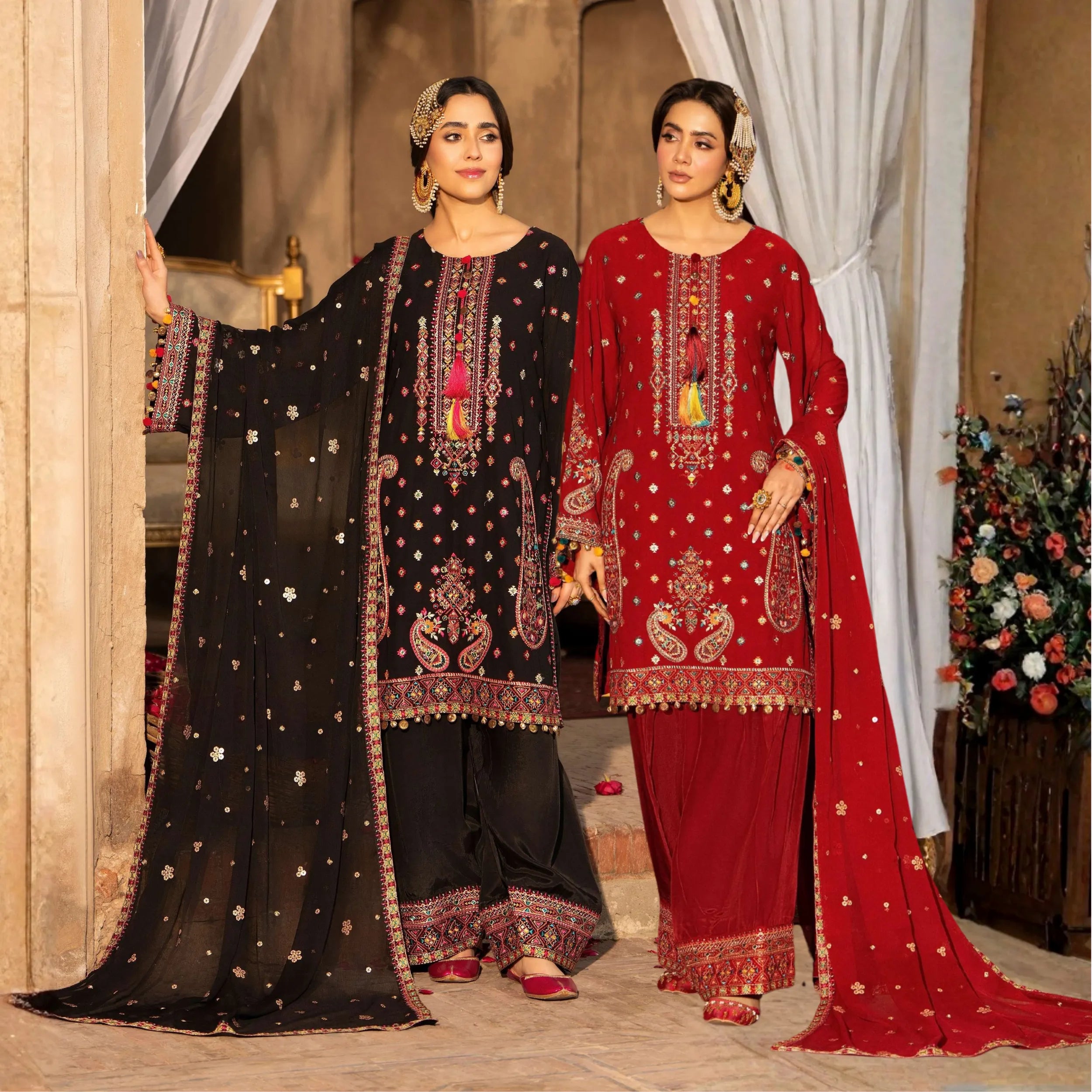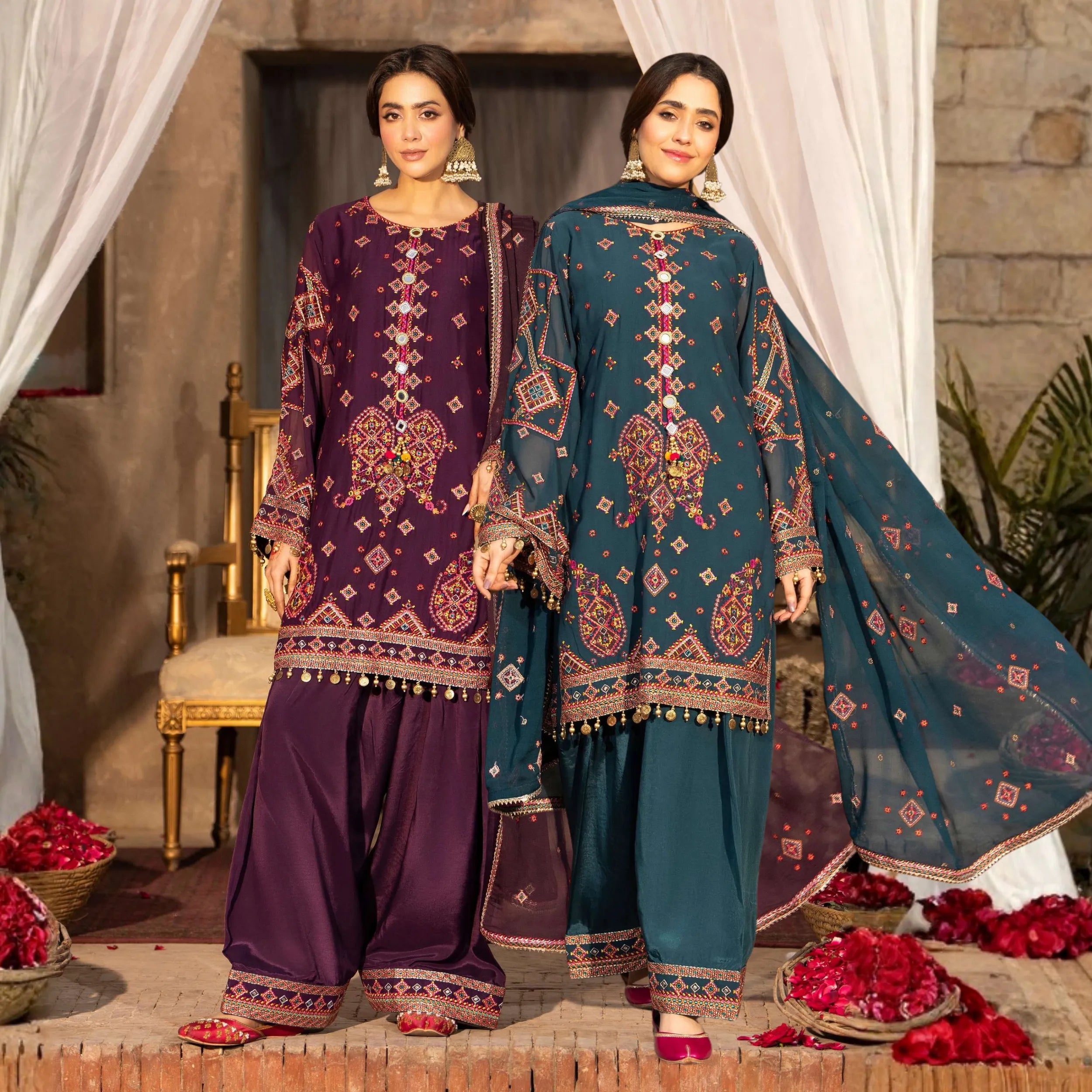 UCA-36 ELARA Festive Embroidered Viscose Dress with Printed Silk Dupatta | Women’s Festive Wear Pakistani Designer Outfit by Casuallite