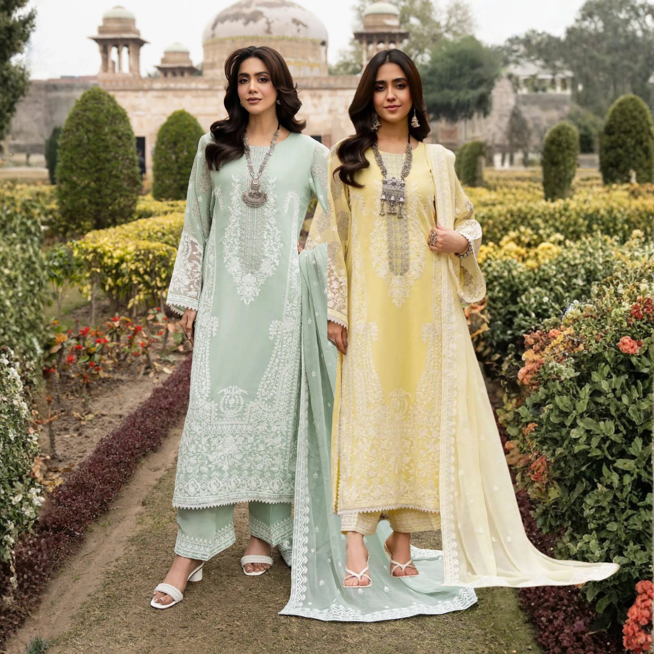UMS-55 Janan Mother Daughter Chikenkari Jacquard Eid Edit by Simrans | Ready to Wear Asian Pakistani clothes