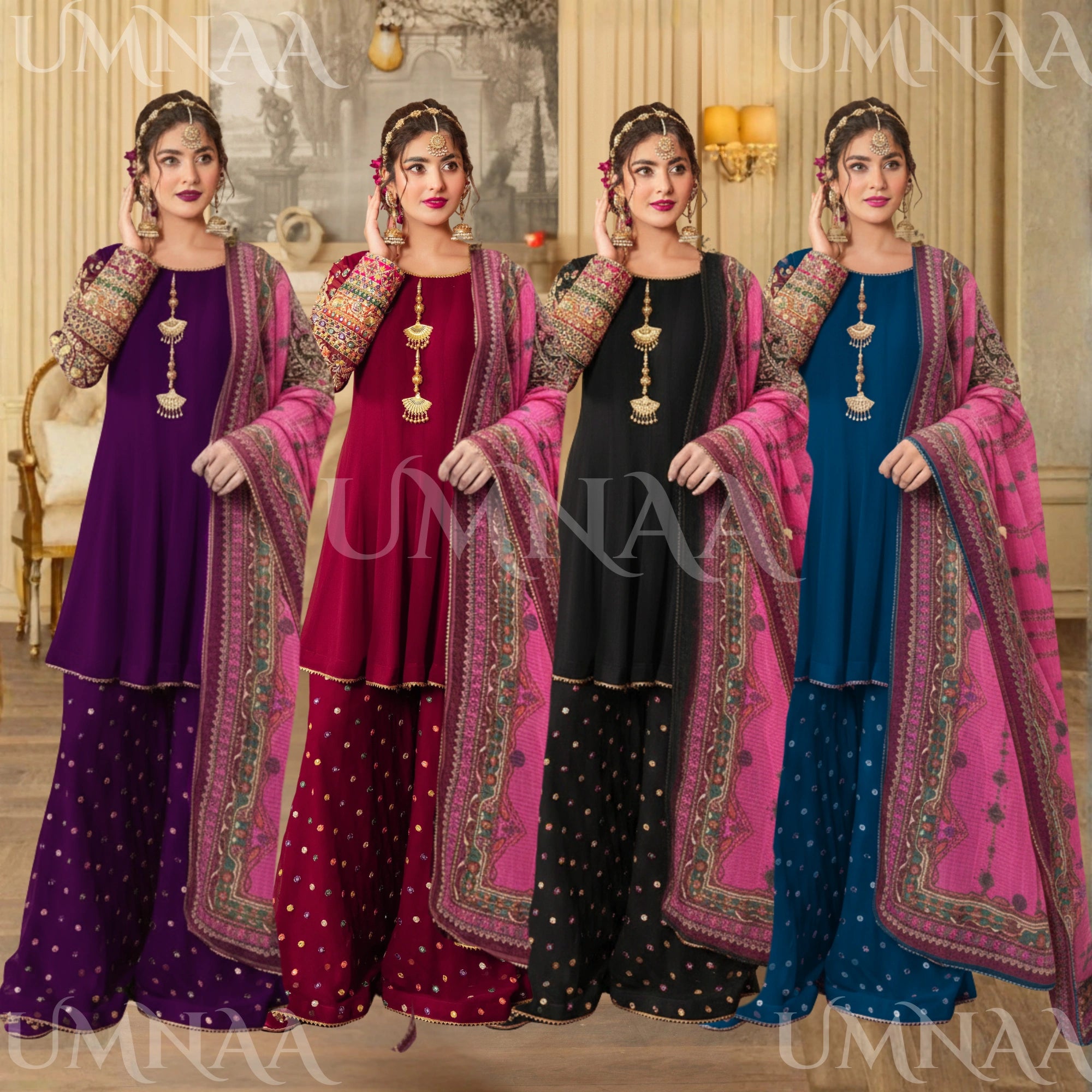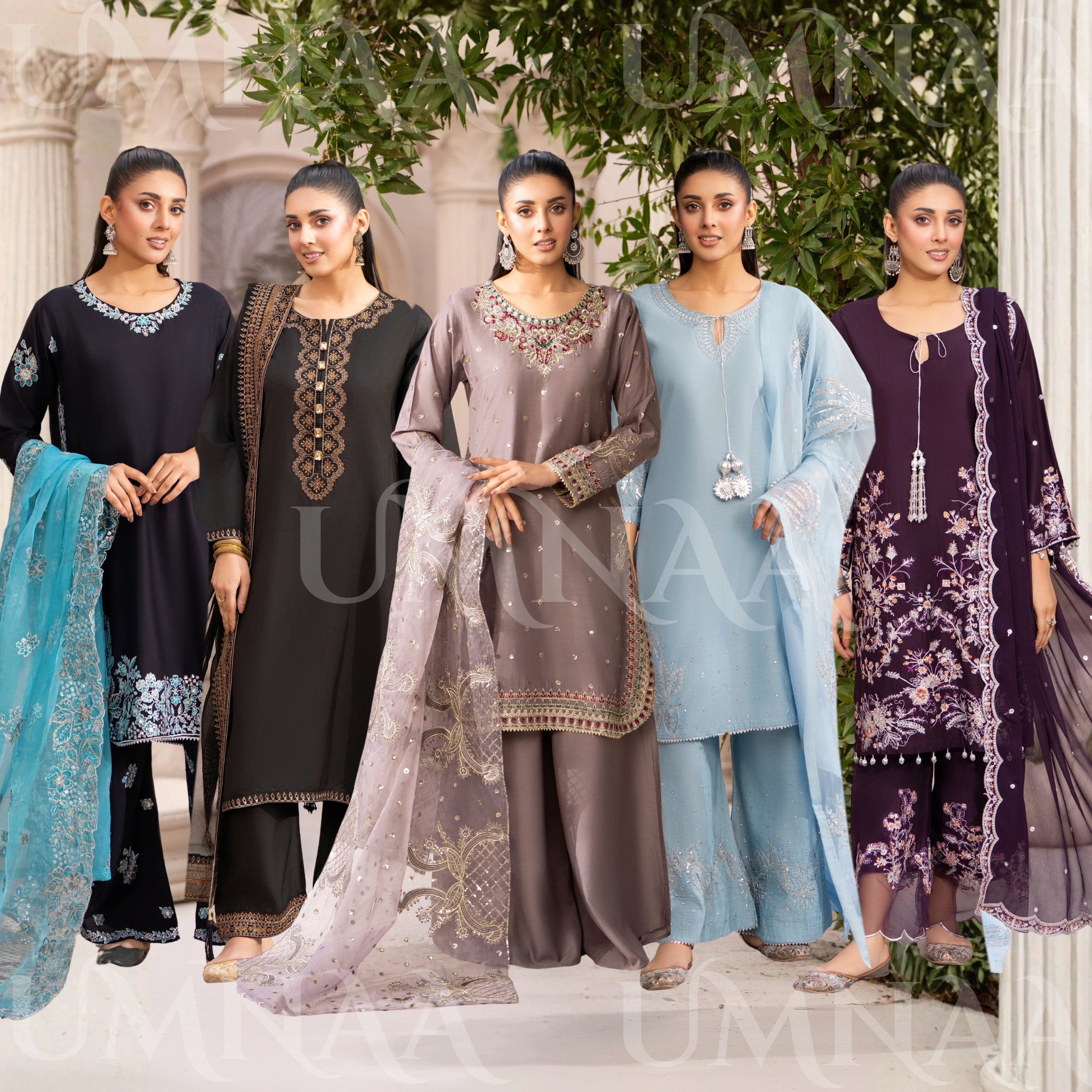UA-151 Embroidered Winter Wear with Farshi Shalwar and Shawl Collection by Umnaa | Asian clothes
