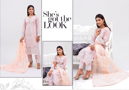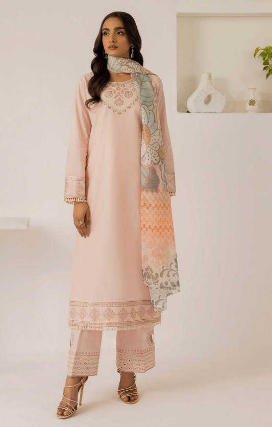 Peach 3 Piece Embroidered Lawn Dress - Esra Fashion