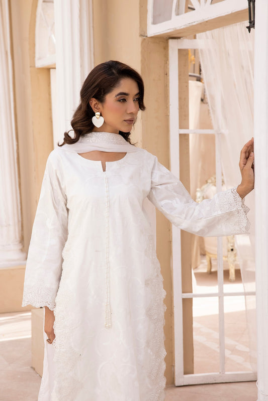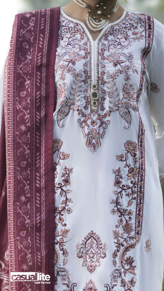 White | Embroidered Linen | 3 Pc | Ready to Wear | Casuallite