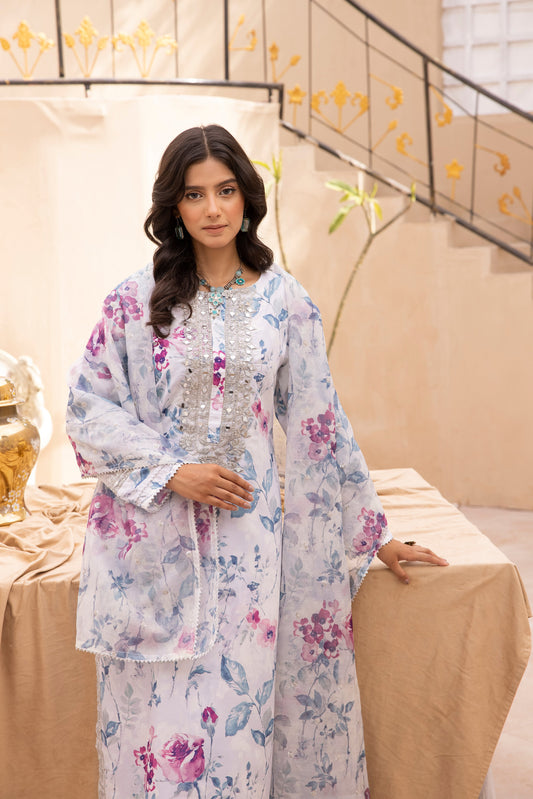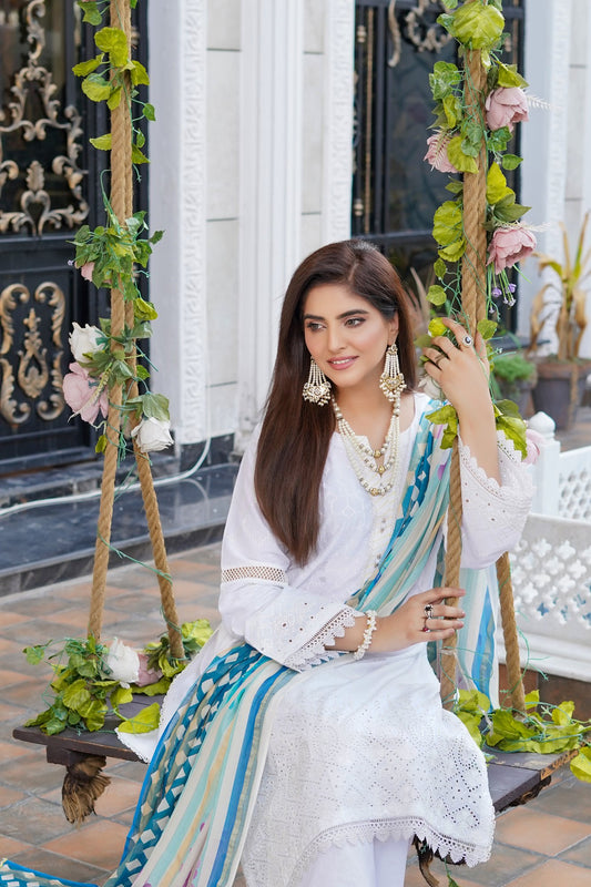 White | Chikankari Schifflil Lawn | 3 Pc | MUNIRA