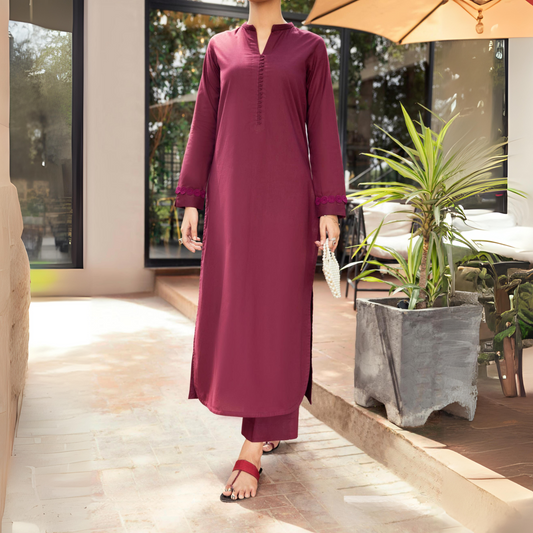 Wine Berry 2 Pc Linen Pakistani Co-Ords Set | Ready to Wear | Casuallite