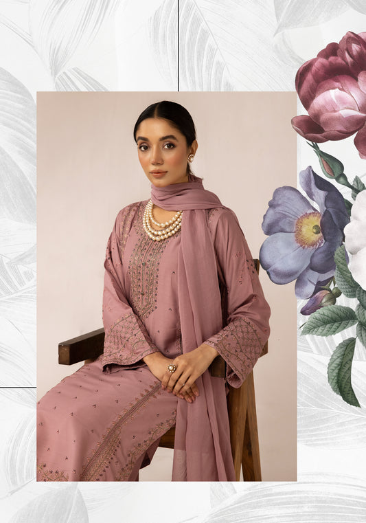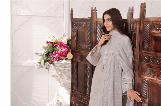 Zinc 3 Piece Embroidered Lawn Dress - Esra Fashion