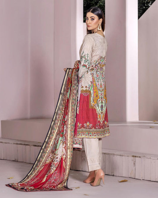 3 Piece stitched Embroidered Digital Printed Linen Dress-Tawakkal