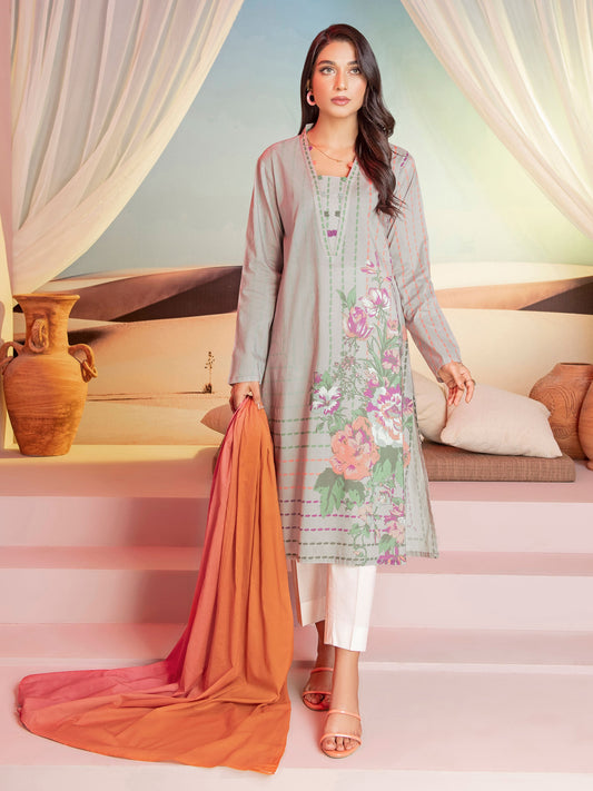 Grey 3 Piece Printed Lawn Suit By Limelight