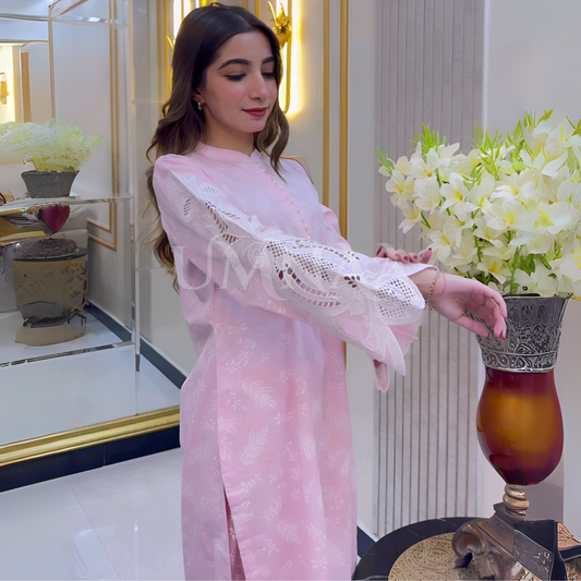 UA-56 (Light Pink) 2 Pc Embroidered Cambric Cotton Pakistani Dress | Ready to Wear | UMNAA