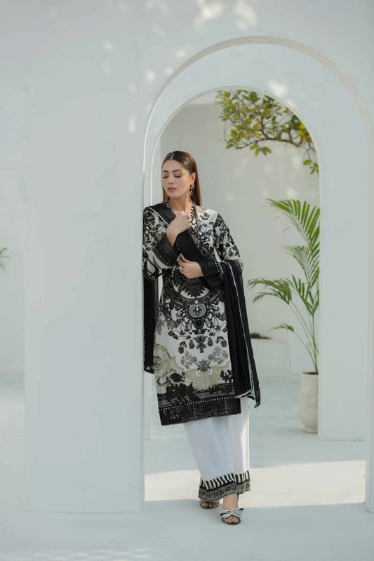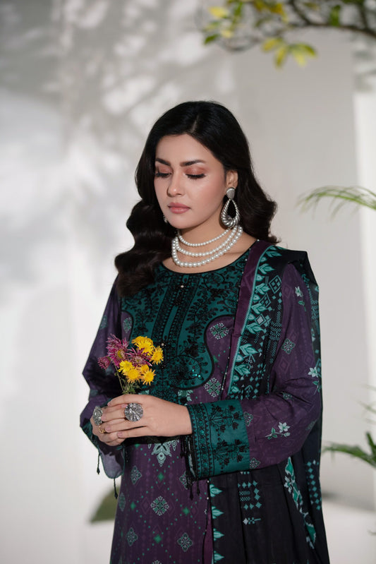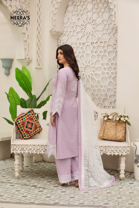 (LILAC Z.J) 3 Pc Embroidered Cambric Cotton Suit-Heera's