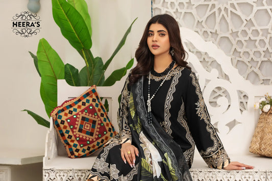 (BLACK FLORA) 3 Pc Embroidered Cambric Cotton Suit-Heera's