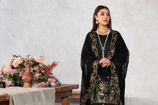 Regular price From £19.99 GBPRegular priceUnit price per£34.99 GBPSale price From £19.99 GBP(BLACK FLORA) 3 Pc Embroidered Cambric Cotton Suit-Heera's