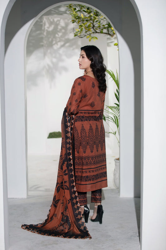 (DIGITAL AUTUMN) 3 Pc Embroidered Cambric Cotton Suit-Heera's