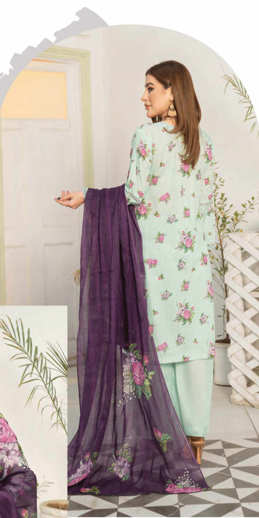 MSL04-3 Pc Digital Printed Embroidered Airjet Lawn Suit - MUNIRA