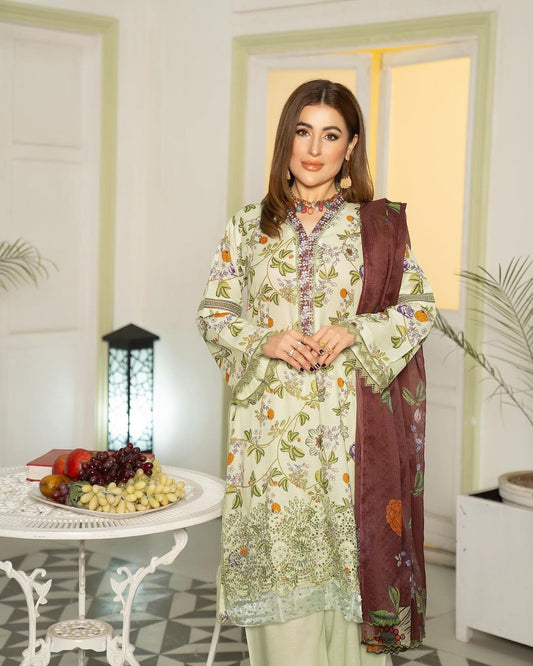 MSL02-3 Pc Digital Printed Embroidered Airjet Lawn Suit - MUNIRA