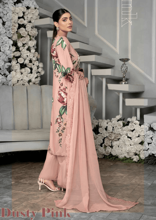 Dusty Pink 3 Piece Linen Suit-Embroidered (Simrans)