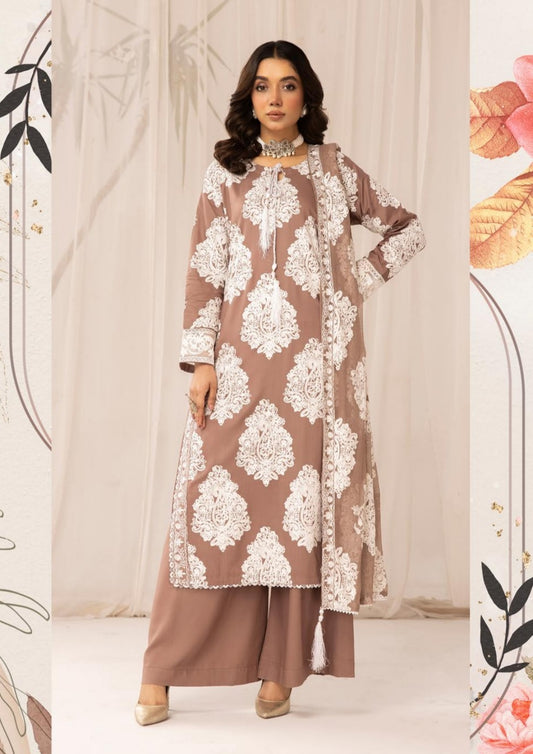 Brown Sugar 3 Piece Linen Suit-Embroidered (Simrans)