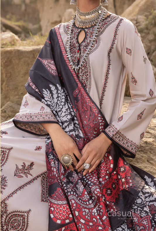 3-Piece Stitched Embroidered Linen Collection - Casuallite