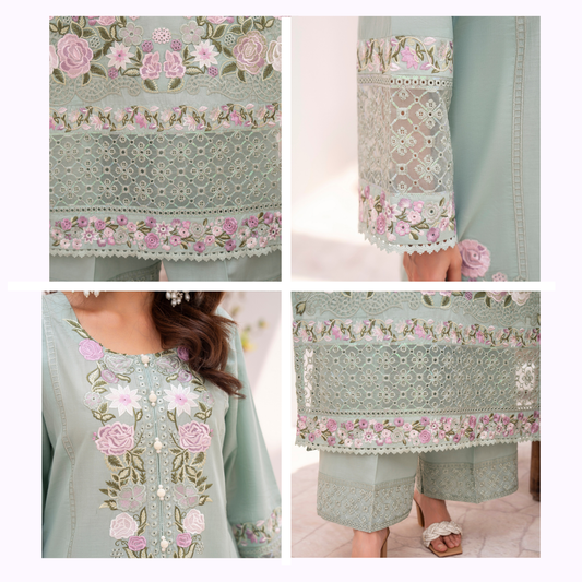 UAL-105 Luxury Festive Lawn Embroidered Mother–Daughter Matching Outfit Set by ALLY'S