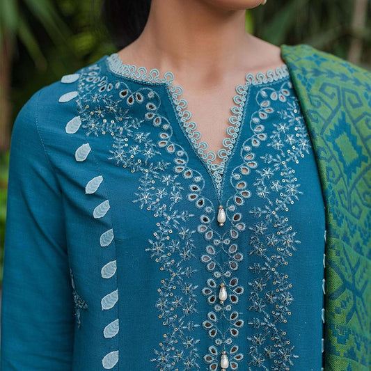 Qalamkar Qline 3 Piece-Linen Collection'23 WL-04 (CELESTE)