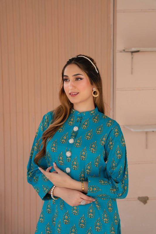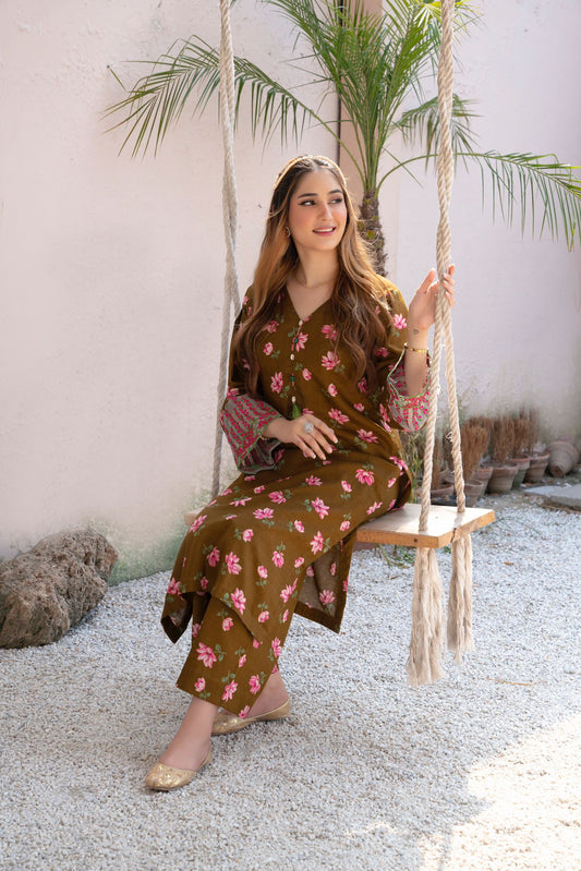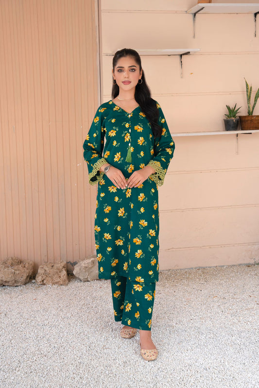 2- Piece Stitched Slub khaddar Outfit By RANIYA.H