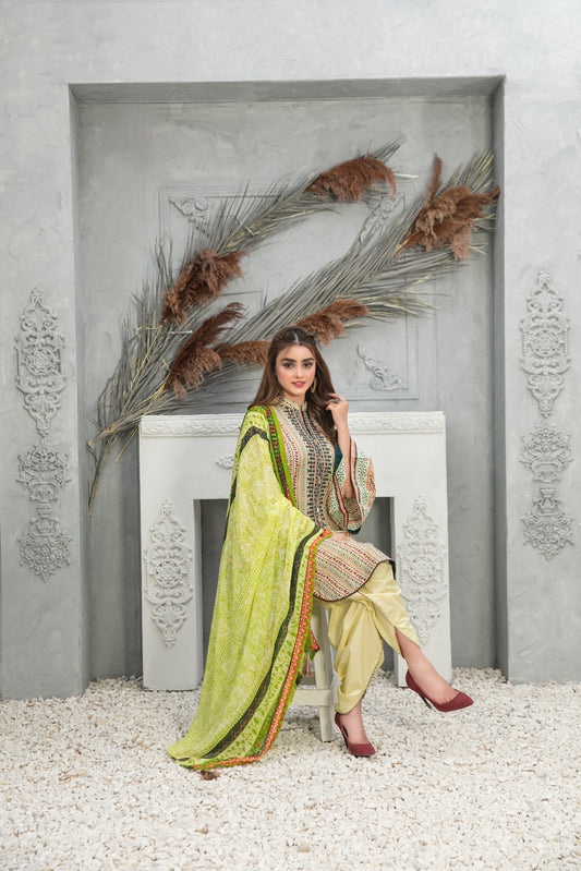 3 PIECE STITCHED EMBROIDERED DIGITAL PRINTED LAWN-TAWAKKAL