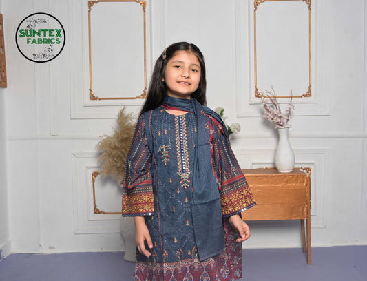 PURPLE 3 PIECE PRINTED KAMEEZ WITH EMBROIDERED CHIFFON DUPPATA