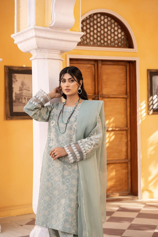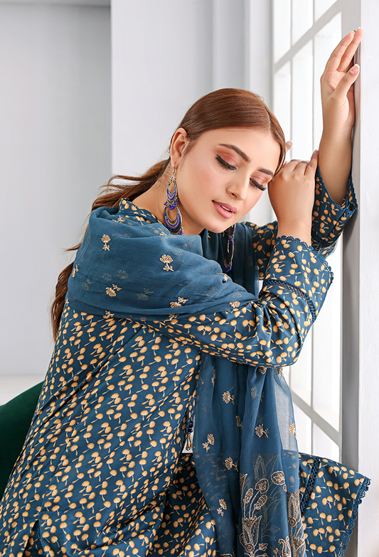 BLUE PRINTED+EMBROIDERED 3 PIECE LAWN COLLECTION-HUMDUM