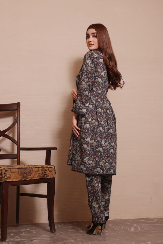 black 2 piece printed lawn dress-Zainab Fazlani