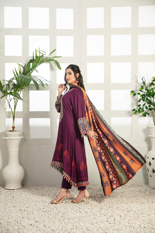 3 Piece stitched Embroidered Digital Printed Linen Dress-Tawakkal