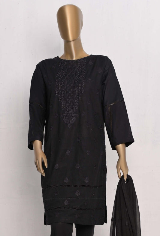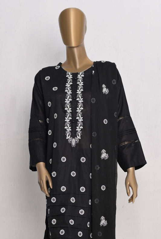 3Pcs Black&White Embroidered lawn Dress -Naubahar