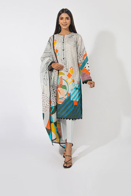 Pearl Grey 3PCS Lawn Suit-Zellbury