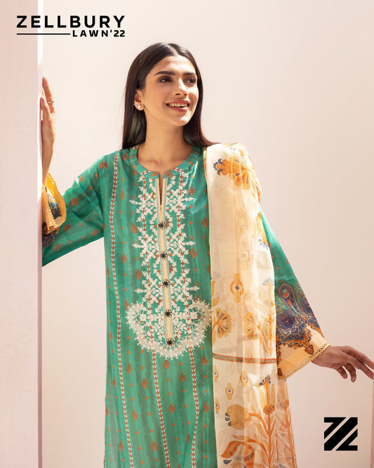Sold outRiver Blue 3Pcs Lawn Suit-Zellbury