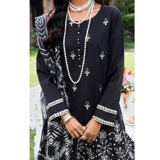 UHE-57 (Black & White) trendy Farshi Shalwar Embroidered Cambric Cotton Embroidered Dress | Ready to Wear | Heera's