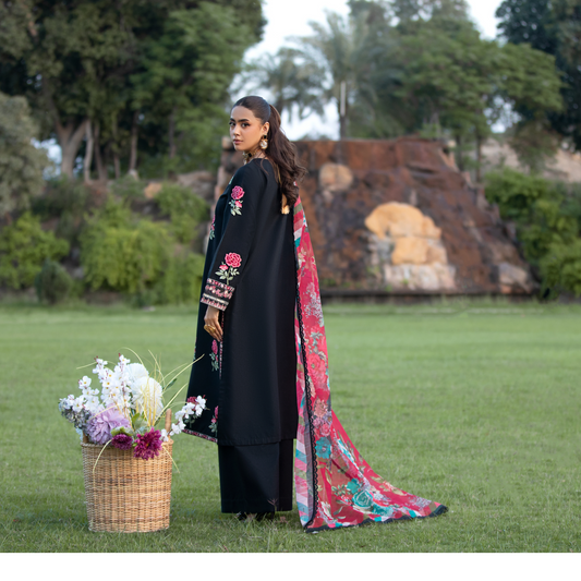 UHE-55 (Black) Luxury Cambric Cotton Embroidered Dress | Ready to Wear | Heera's