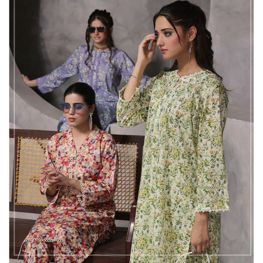 2 Pc Ready to wear Printed Lawn Co-Ords Dress - Saphron