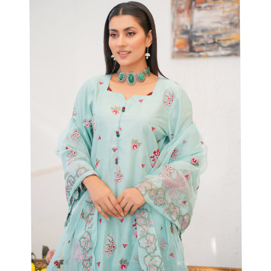 UA-76 (Sea Green) Embroidered Linen 3 Pc Pakistani Dress | Ready to wear | UMNAA