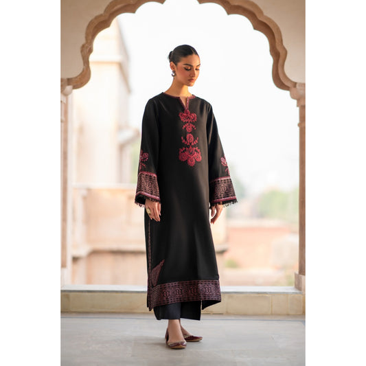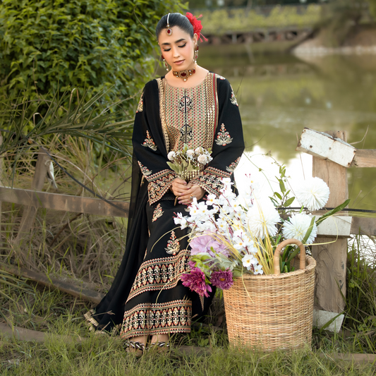 UHE-53 (black) 3 Pc Luxury Embroidered Cambric Cotton ready to wear Dress | Summer Wear | Heera's