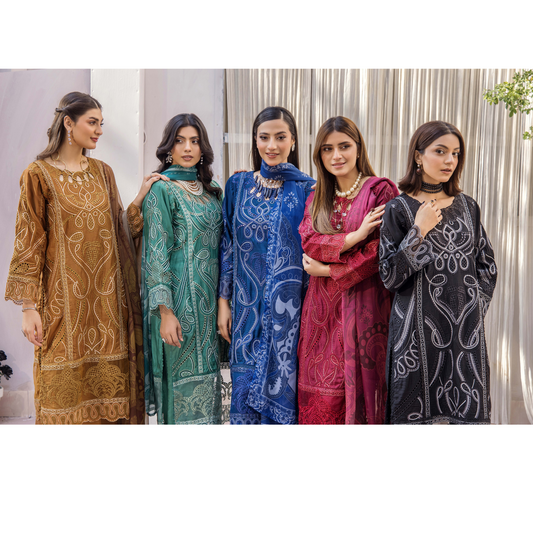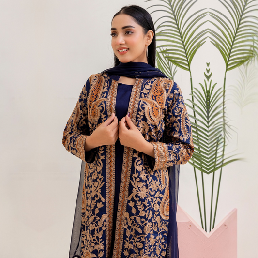 3 Pc Festive Embroidered Collection | Ready to Wear | Qalamkar