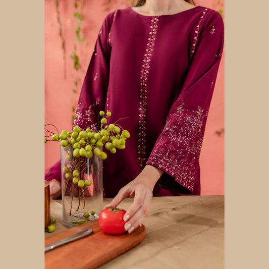 UA-74 (Burgundy) 3 Pc Embroidered Cambric Cotton Collection | Ready to Wear | UMNAA