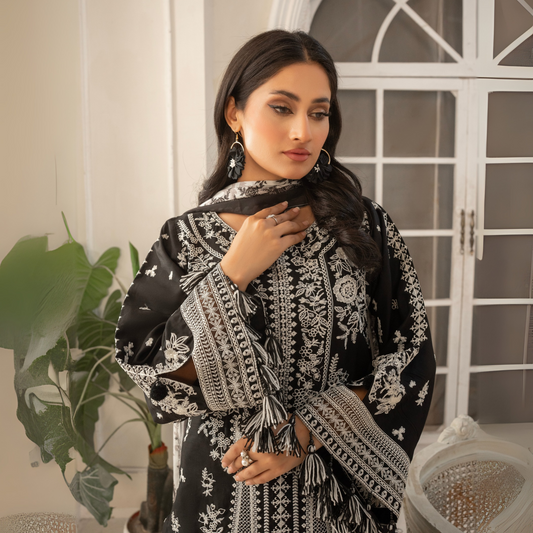 UA-51 (Black) Embroidered Viscose Linen 3 Pc Pakistani Dress | Ready to wear | UMNAA