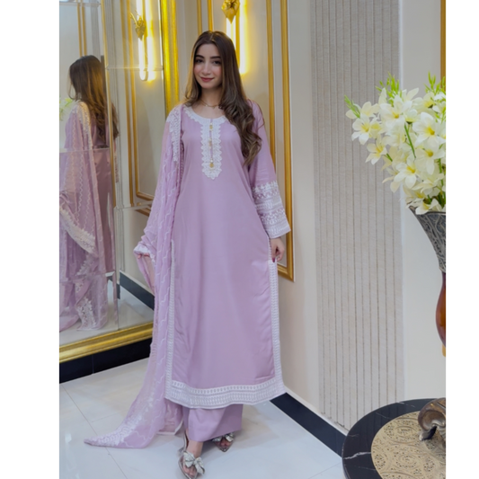 UA-46 3 Pc Luxury mother daughter Embroidered Linen Collection-UMNAA