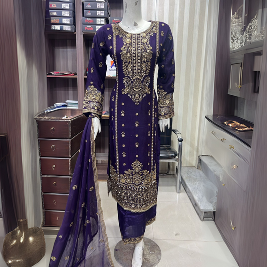 Regular price £39.99 GBPRegular priceUnit price perSale price £39.99 GBPUA-48 Luxury Embroidered Chiffon Dress with Chiffon Dupatta 3 Pc |Ready to Wear| UMNAA