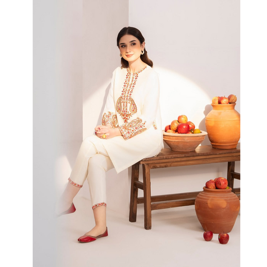 UA-50 Embroidered Viscose Linen 2 Pc Pakistani Co Ord Set Dress | Ready to wear | UMNAA