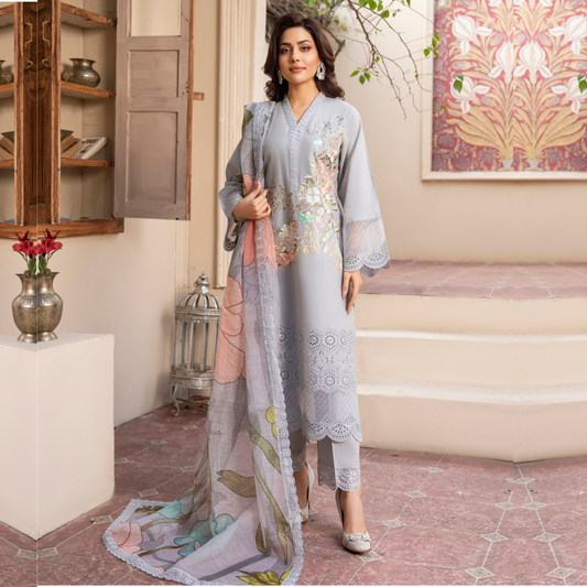 UKC-16 Embroidered Cambric Cotton Ready to Wear 3 Pc - Karma Collection