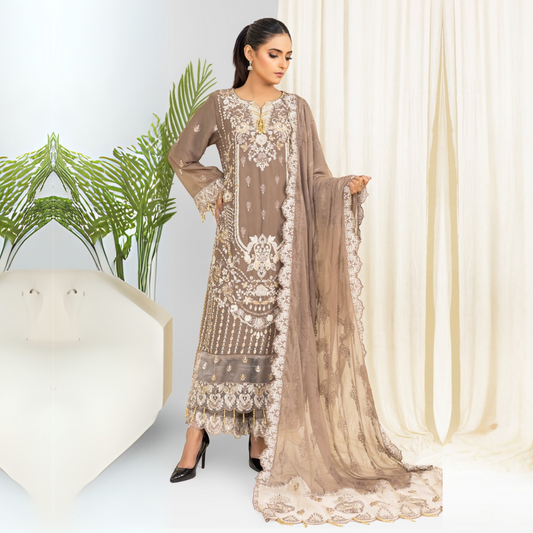 Regular price £39.99 GBPRegular priceUnit price perSale price £39.99 GBPLuxury Embroidered Chiffon Dress 3 Pc | Winter Collection | Rangz | UMRGZ3601