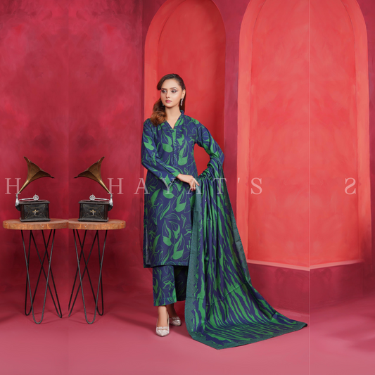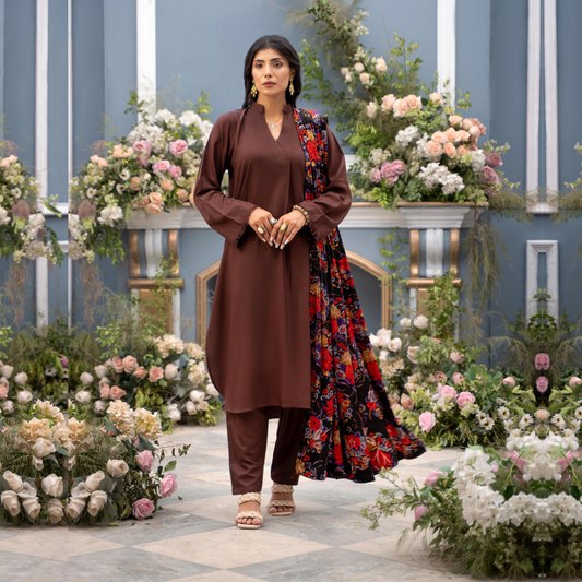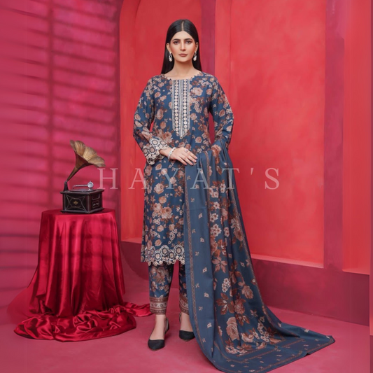 Printed Khaddar Dress with Pashmina Shawl|3 Pc| Winter Collection | Hayats