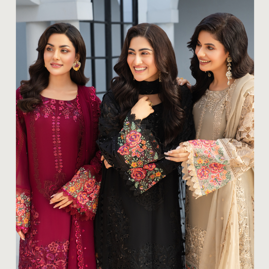Regular price £34.99 GBPRegular priceUnit price perSale price £34.99 GBP(Black) 3 Pc Embroidered Viscose Linen Pakistani Dress With Chiffon Dupatta | Winter Wear | Heera's